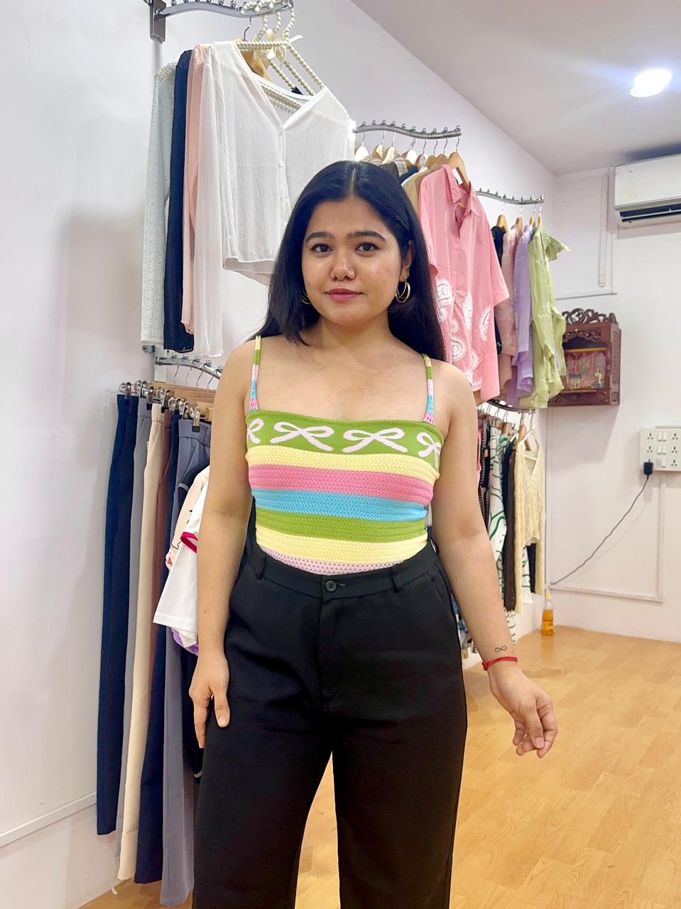 Previous Product Next Product Crochet Bow Top ₹300.00 One size for X-small to Large (Bust 30-38) Colour Choose an optionGreenYellowClear Crochet Bow Top quantity Add to cart SKU: N/A Categories: Tops, Uncategorized Tags: Bow Top, Crochet Top, Sleeveless Top Additional information Reviews (0) Additional information Colour Green, Yellow Size One Size Reviews There are no reviews yet. Be the first to review “Crochet Bow Top” Cancel replyYour email address will not be published. Required fields are marked *Your rating * Rate… Perfect Good Average Not that bad Very poor Your review *Name * Email * Save my name, email, and website in this browser for the next time I comment. Δ Opens in a new window Tweet This Product Opens in a new window Share on Facebook Opens in a new window Pin This Product Opens in a new window Mail This Product Related products Quick View Quick View White Wide Leg Denim ₹650.00 Add to Wishlist Quick View Quick View Pleated Trouser ₹600.00 Add to Wishlist Quick View Quick View Satin Knot Top ₹320.00 Add to Wishlist