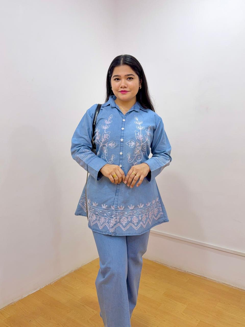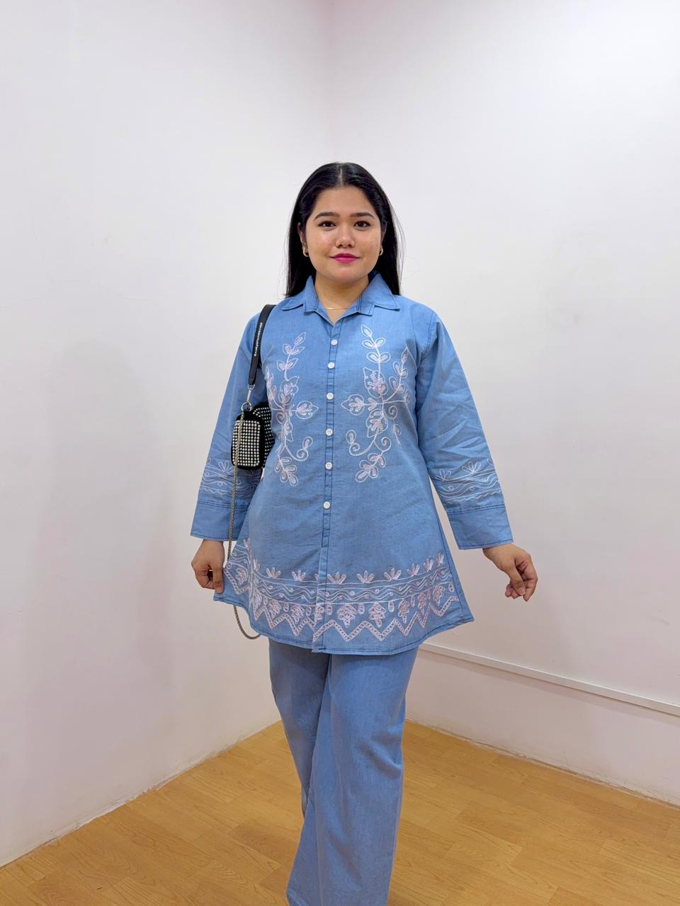 Previous Product Next Product Flare Denim Shirt & Pant Set ₹1,099.00 Fits to bust 30-36 & waist 26-32 Shirt Buttons Not Openable Colour Choose an optionDark BlueIce BlueClear Flare Denim Shirt & Pant Set quantity Add to cart SKU: N/A Categories: Co-ords, Uncategorized Tags: Co-Ord Set, Embroidered Shirt, Flare Shirt Additional information Reviews (0) Additional information Colour Dark Blue, Ice Blue Size One Size Reviews There are no reviews yet. Be the first to review “Flare Denim Shirt & Pant Set” Cancel replyYour email address will not be published. Required fields are marked *Your rating * Rate… Perfect Good Average Not that bad Very poor Your review *Name * Email * Save my name, email, and website in this browser for the next time I comment. Δ Opens in a new window Tweet This Product Opens in a new window Share on Facebook Opens in a new window Pin This Product Opens in a new window Mail This Product Related products Quick View Quick View Black Slit Skirt ₹499.00 Add to Wishlist Quick View Quick View ICE BLUE TORN JEANS ₹750.00 Add to Wishlist Quick View Quick View ANARKALI KURTI ₹600.00 Add to Wishlist