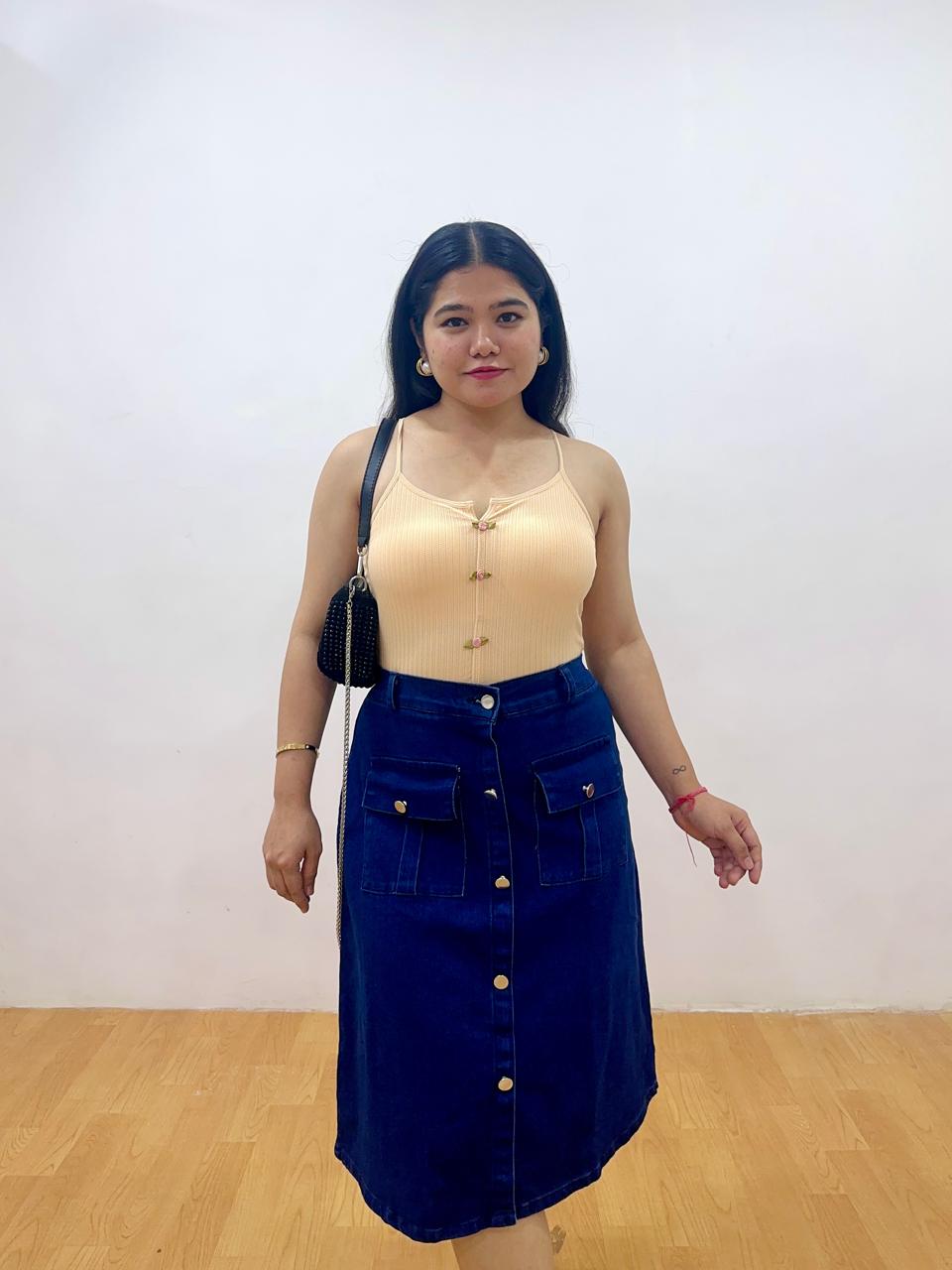Front Pocket Dark Blue Denim Skirt