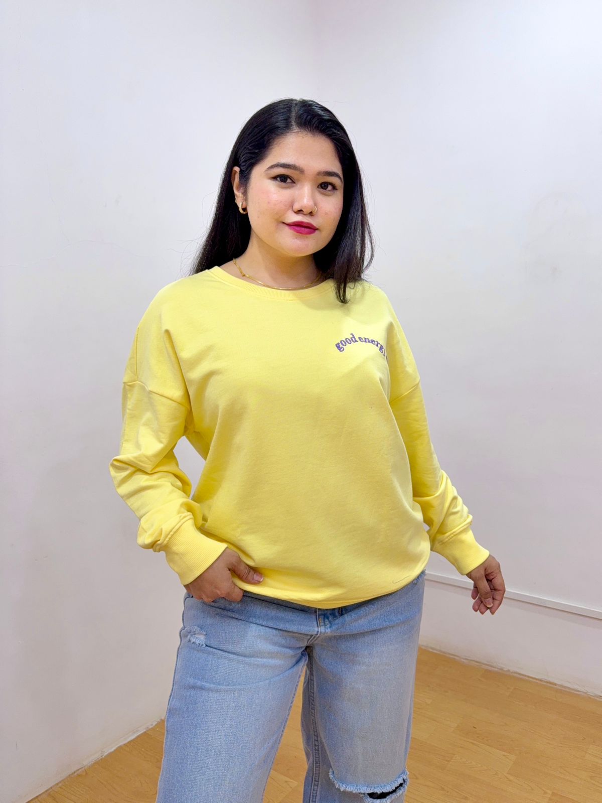 Previous Product Next Product Good Energy Club Sweatshirt ₹599.00 Free size for Small to Large (Bust 32-38) 1 in stock Good Energy Club Sweatshirt quantity Add to cart Categories: T-shirts, Uncategorized Tags: Graphic Sweatshirt, Sweatshirt Additional information Reviews (0) Additional information Colour Yellow Size One Size Reviews There are no reviews yet. Be the first to review “Good Energy Club Sweatshirt” Cancel replyYour email address will not be published. Required fields are marked *Your rating * Rate… Perfect Good Average Not that bad Very poor Your review *Name * Email * Save my name, email, and website in this browser for the next time I comment. Δ Opens in a new window Tweet This Product Opens in a new window Share on Facebook Opens in a new window Pin This Product Opens in a new window Mail This Product Related products Quick View Quick View Naira Cut Kurti with Dupatta & Pant ₹800.00 Add to Wishlist Quick View Quick View Dark Blue Mom Fit Jeans ₹650.00 Add to Wishlist Quick View Quick View Cotton Joggers ₹560.00 Add to Wishlist