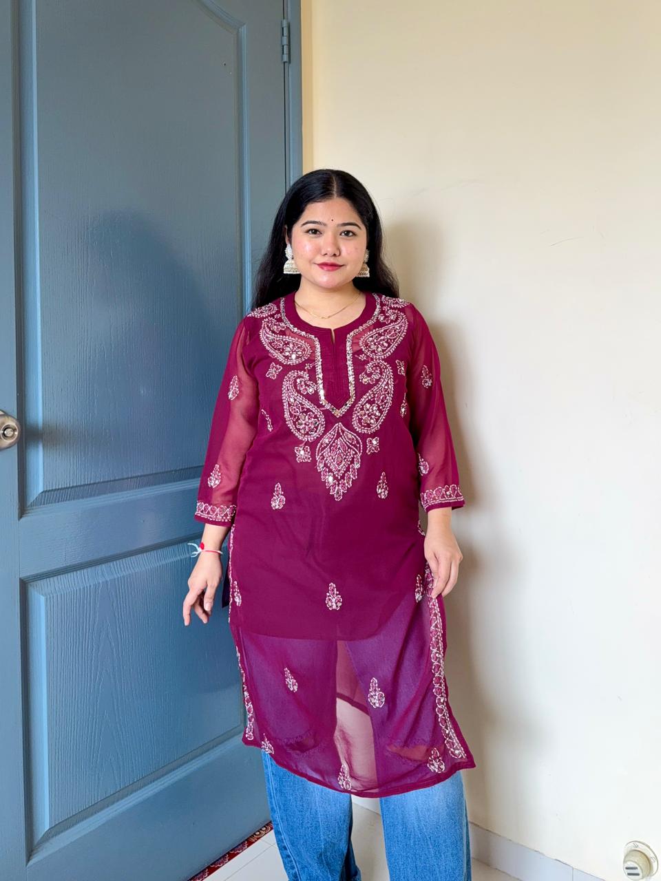 Previous Product Next Product Mirror work Chikankari Embroidered Kurti ₹500.00 Free size for X-small to Large (Bust 30-38) Comes with similar color inner Colour Choose an optionLavenderRedClear Mirror work Chikankari Embroidered Kurti quantity Add to cart SKU: N/A Categories: Ethnic, Uncategorized Tags: Kurti, Mirror work Chikankari Embroidered Kurti Additional information Reviews (0) Additional information Colour Lavender, Red Size One Size Reviews There are no reviews yet. Be the first to review “Mirror work Chikankari Embroidered Kurti” Cancel replyYour email address will not be published. Required fields are marked *Your rating * Rate… Perfect Good Average Not that bad Very poor Your review *Name * Email * Save my name, email, and website in this browser for the next time I comment. Δ Opens in a new window Tweet This Product Opens in a new window Share on Facebook Opens in a new window Pin This Product Opens in a new window Mail This Product Related products Quick View Quick View Dark Blue Mom Fit Jeans ₹650.00 Add to Wishlist Quick View Quick View Black Slit Skirt ₹499.00 Add to Wishlist Quick View Quick View Pleated Trouser ₹600.00 Add to Wishlist