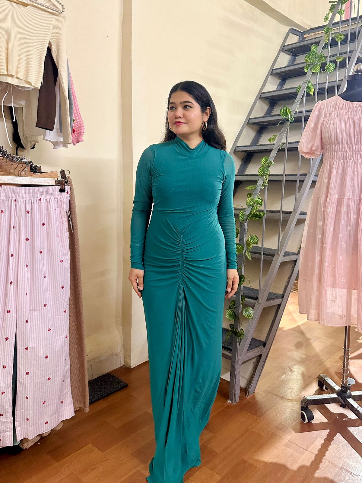 Previous Product Next Product Turtleneck Fitted Gown ₹1,299.00 Turtleneck Mesh Gown Free Size: For X-small to Large (Bust 30 to 38 | Waist 26 to 34) Colour Choose an optionGreenHot PinkClear Turtleneck Fitted Gown quantity Add to cart SKU: N/A Categories: Dresses, Uncategorized Tags: Mesh Gown, Turtleneck Gown Additional information Reviews (0) Additional information Colour Green, Hot Pink Size One Size Reviews There are no reviews yet. Be the first to review “Turtleneck Fitted Gown” Cancel replyYour email address will not be published. Required fields are marked *Your rating * Rate… Perfect Good Average Not that bad Very poor Your review *Name * Email * Save my name, email, and website in this browser for the next time I comment. Δ Opens in a new window Tweet This Product Opens in a new window Share on Facebook Opens in a new window Pin This Product Opens in a new window Mail This Product Related products Quick View Quick View Cotton Cargo ₹799.00 Add to Wishlist Quick View Quick View Sleeveless Satin Top ₹370.00 Add to Wishlist Quick View Quick View Pleated Trouser ₹600.00 Add to Wishlist