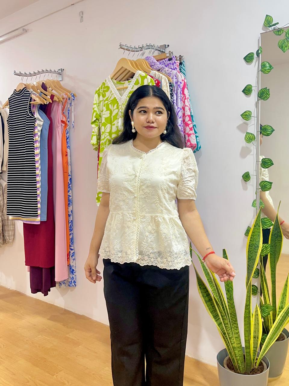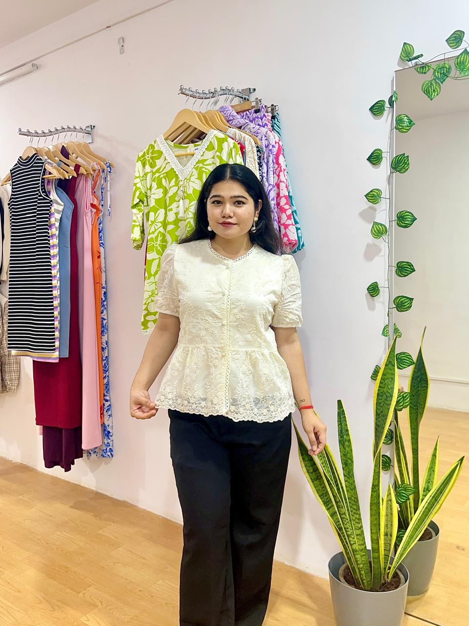 Previous Product Next Product White Korean Top With Front Button ₹785.00 Free size for X-small to Large (Bust 30 to 38) 1 in stock White Korean Top With Front Button quantity Add to cart Categories: Tops, Uncategorized Tags: Korean Top, White Top Additional information Reviews (0) Additional information Colour Off White Size One Size Reviews There are no reviews yet. Be the first to review “White Korean Top With Front Button” Cancel replyYour email address will not be published. Required fields are marked *Your rating * Rate… Perfect Good Average Not that bad Very poor Your review *Name * Email * Save my name, email, and website in this browser for the next time I comment. Δ Opens in a new window Tweet This Product Opens in a new window Share on Facebook Opens in a new window Pin This Product Opens in a new window Mail This Product Related products Quick View Quick View Charcoal Wide Leg Denim ₹650.00 Add to Wishlist Quick View Quick View ANARKALI KURTI ₹600.00 Add to Wishlist Quick View Quick View ICE BLUE TORN JEANS ₹750.00 Add to Wishlist